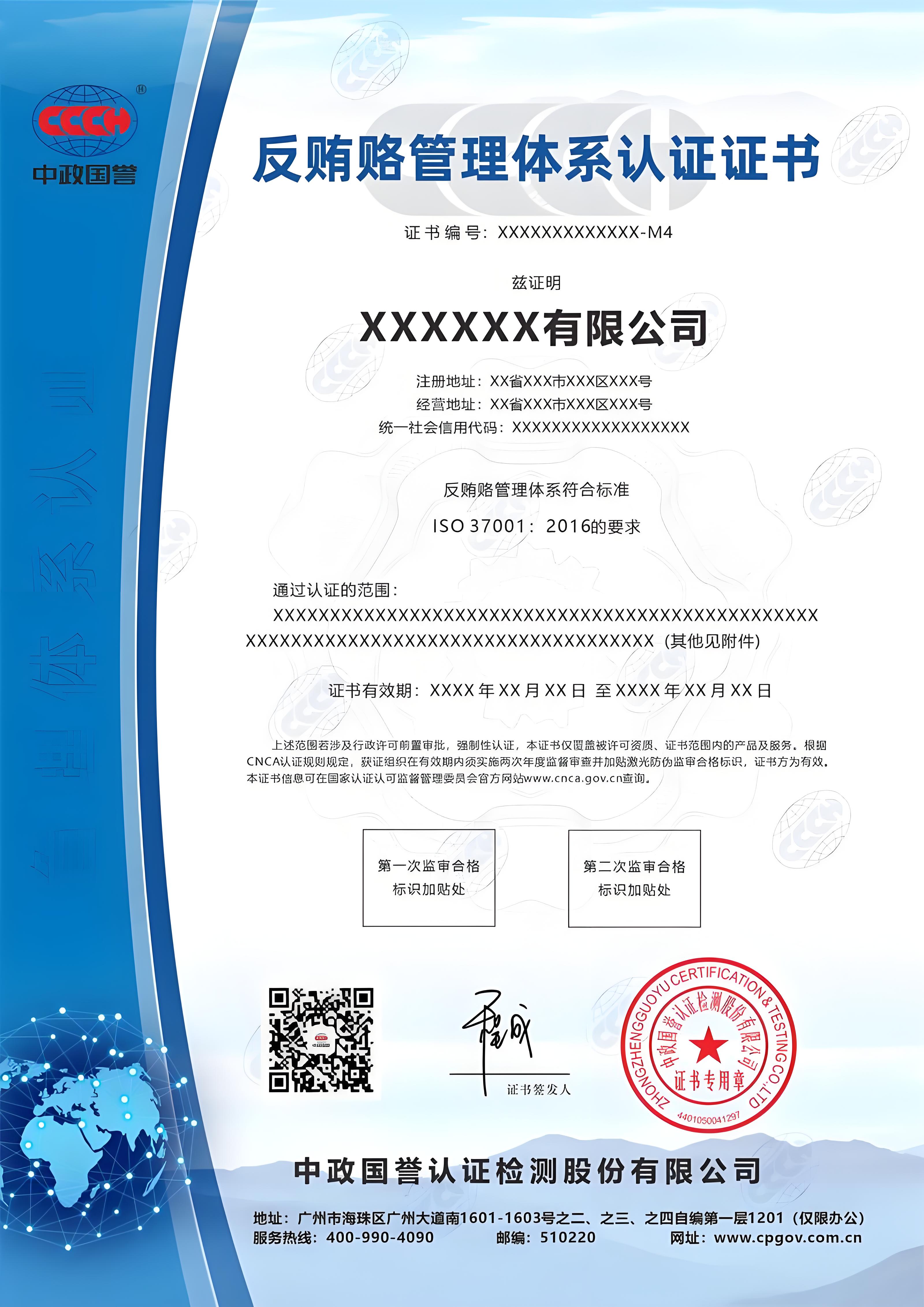 3、ISO 37001反贿赂管理体系认证为企业应对贿赂风险提供了有力的支持和保障。通过实施该体系,企业能够建立健全反贿赂管理机制,提升合规水平,增强市场竞争力,实现可持续发展。