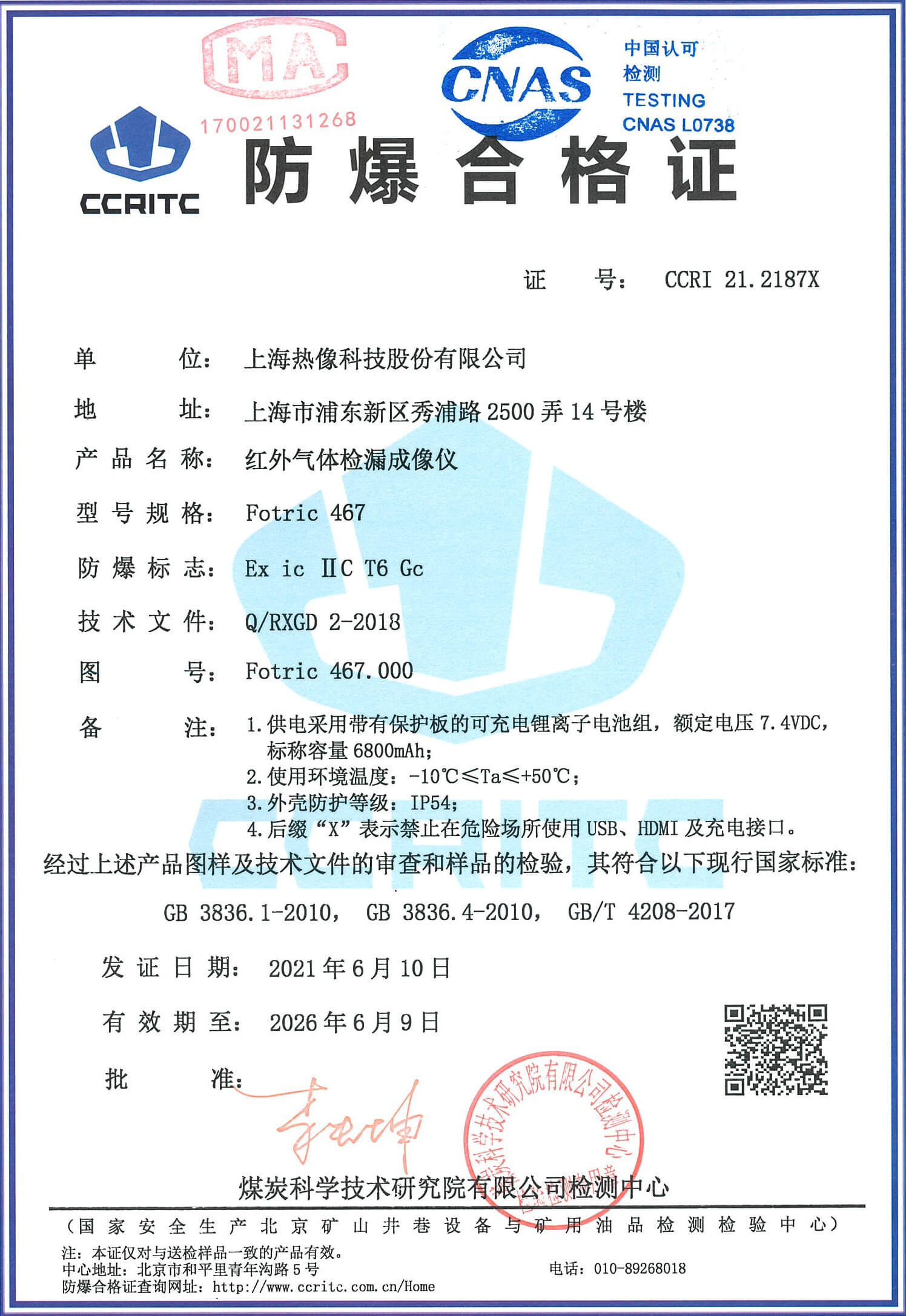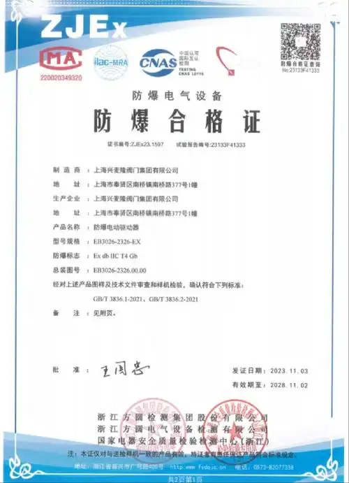 1. 防爆证书:通过防爆合格认证后,设备会获得相关的防爆合格证书,证明该设备可以在特定的爆炸性气体或粉尘环境下安全使用。