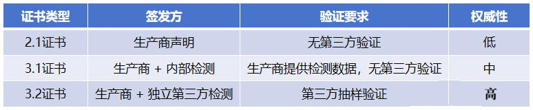 3、文件审核与签发:第三方确认数据真实性后,与生产商联合签发3.2证书,标注唯一批号。