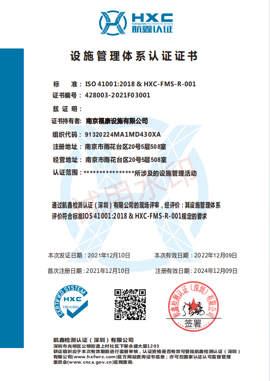 41001∶2018设施管理—管理系统—要求和使用指南是针对企业设施的综合管理体系,适用于企业内部设施管理的提升和专业的设施管理服务公司证明其为客户管理设施的能力。
